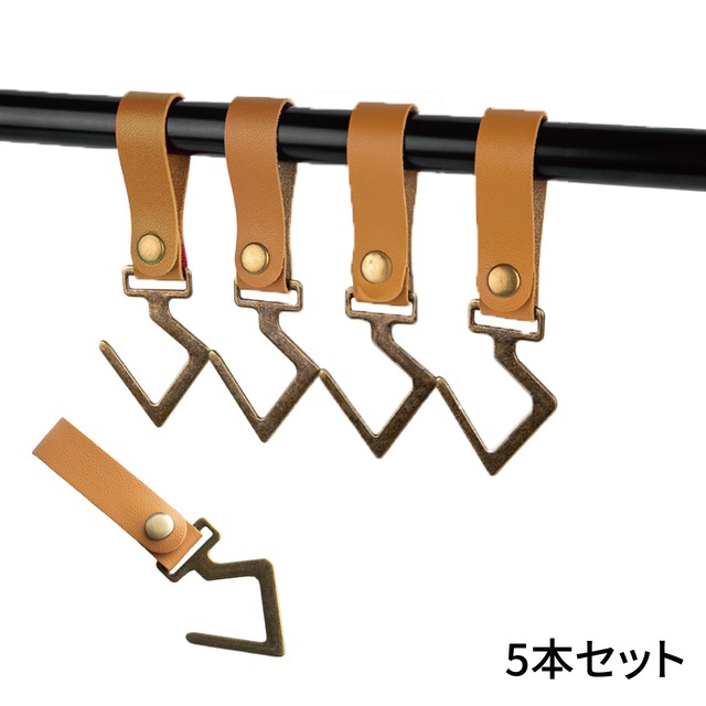 ハンギングラック用レザーフック(ブラウン)5個セット