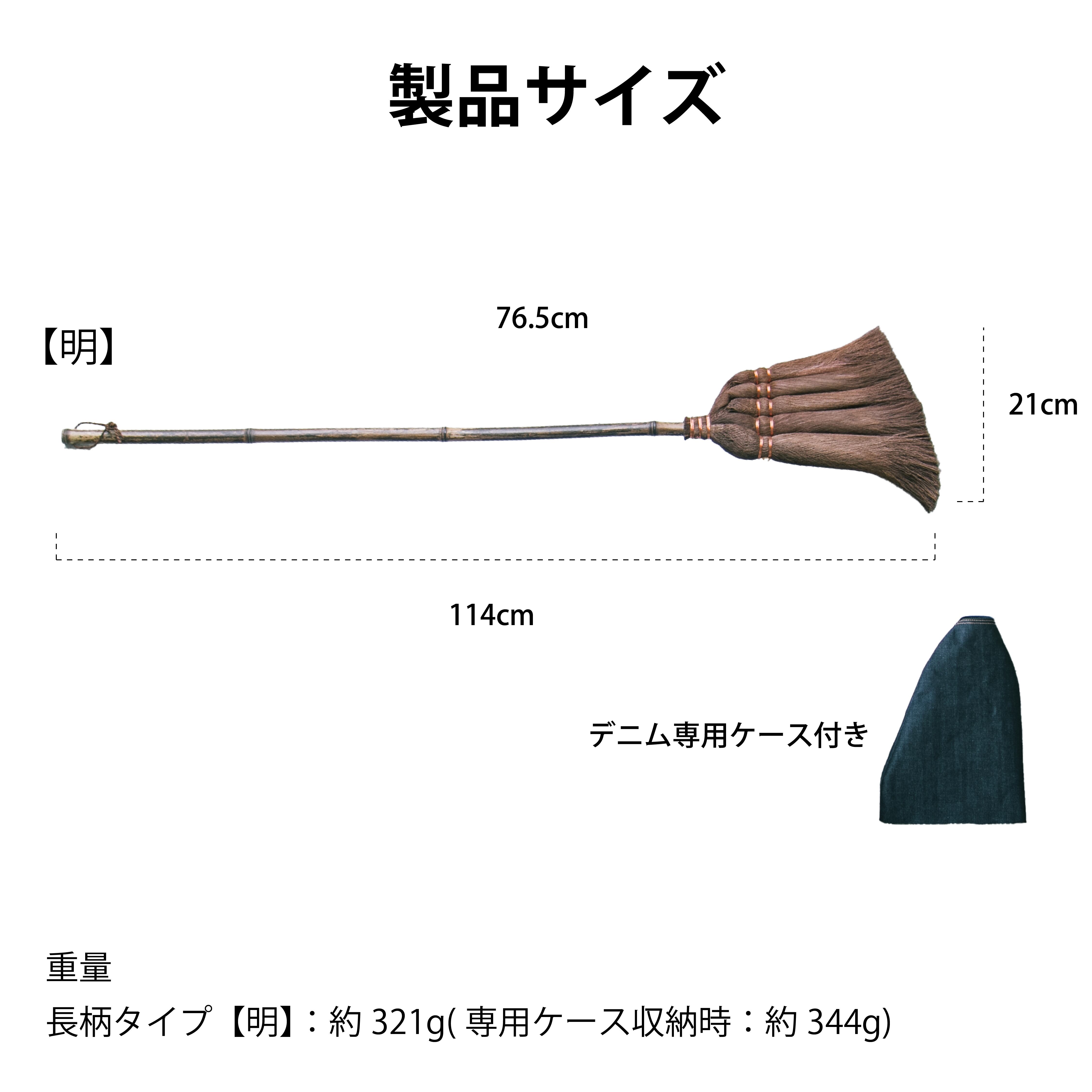 114cm長柄タイプの【明(あけ)】は腰をかがめず使えて、疲れにくく、広範囲のお掃除に向いていると言えます。