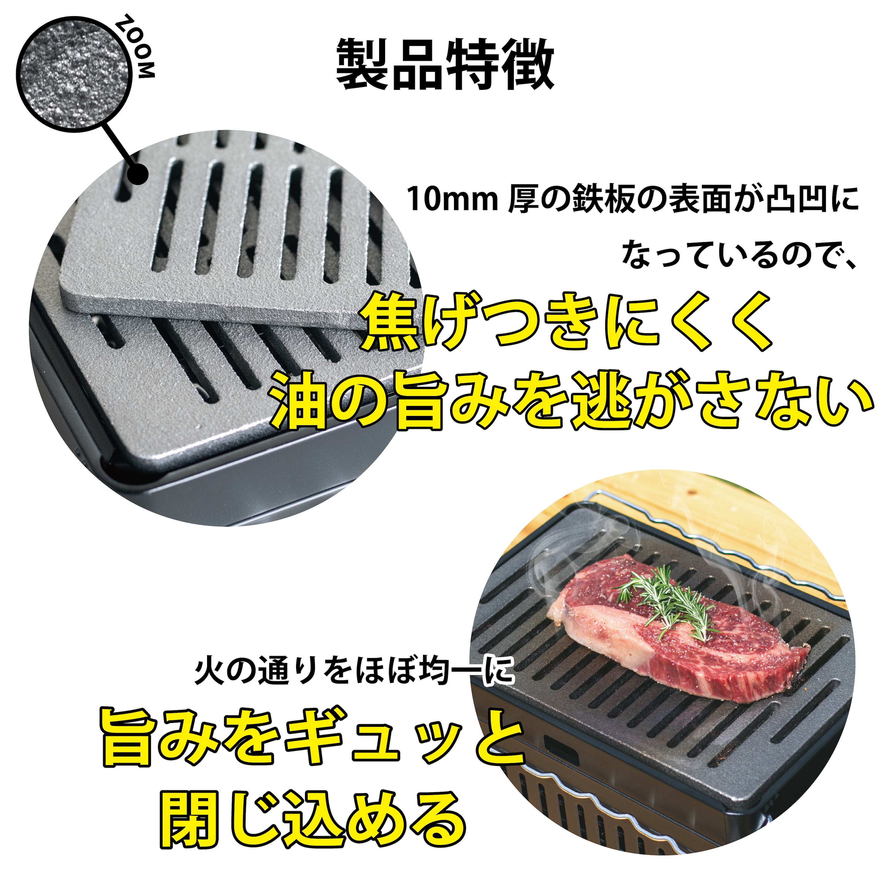 Meat banは極厚10mm。食材を美味しく焼き上げます。