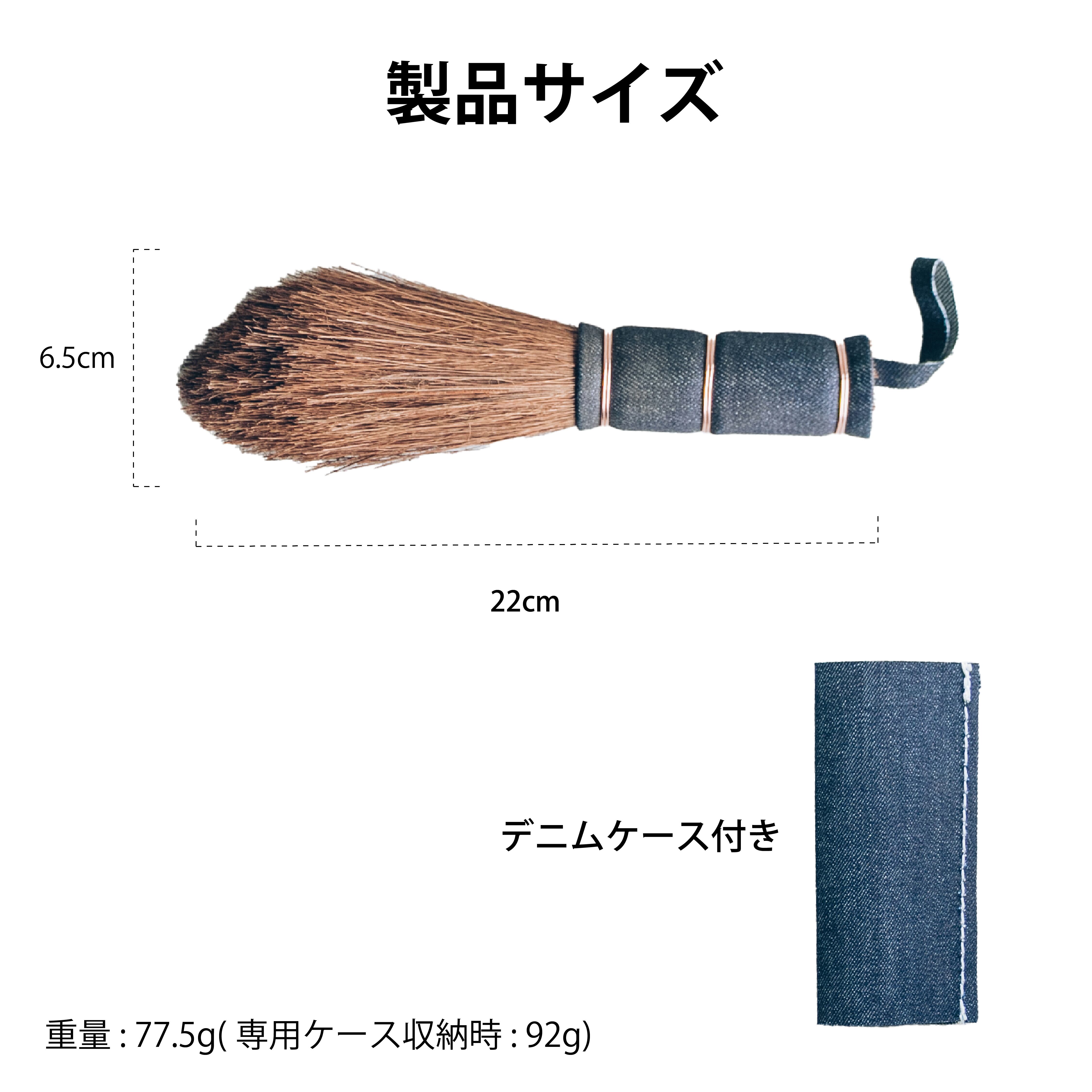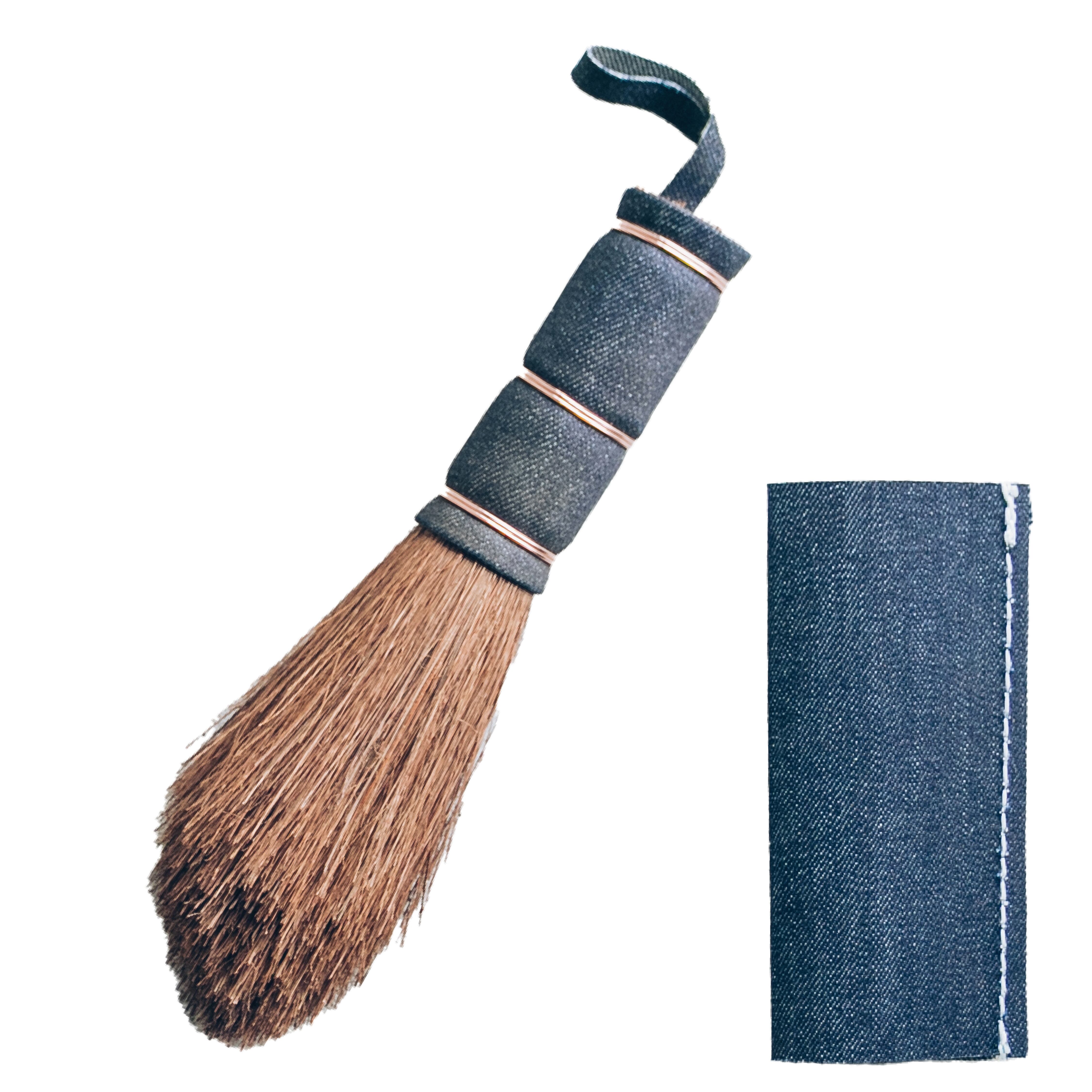デザインにも拘りグリップには国産デニムを巻いており使い込むほど味がでる育てる道具として、、さらに専用カバーがある為、道具箱と一緒に入れても穂先が広がらないようになっており長く愛用頂けます。