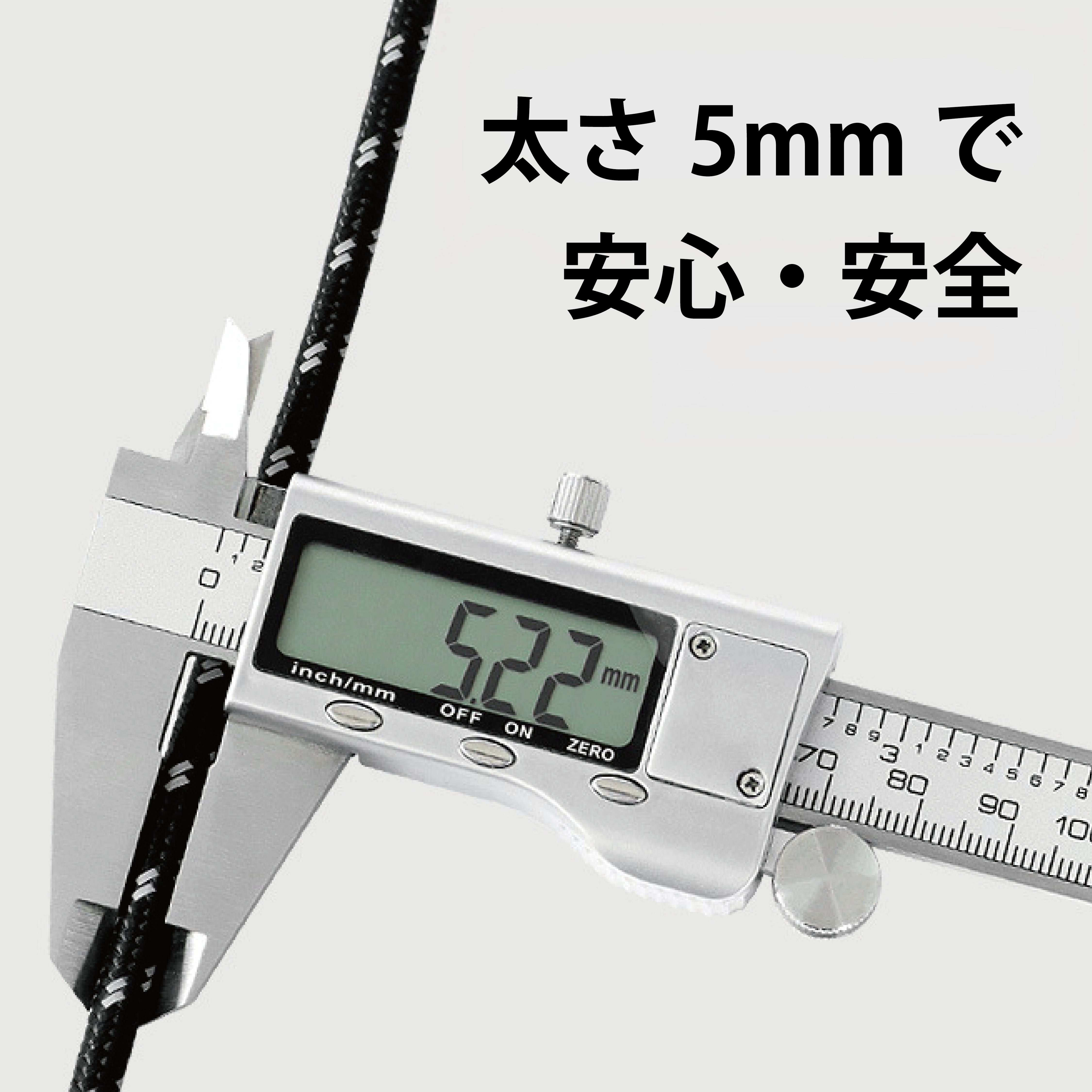 入りワイヤーが編み込まれています。わずかな光があれば視認性を高めてくれ、夜、足を引っ掛ける心配もありません。