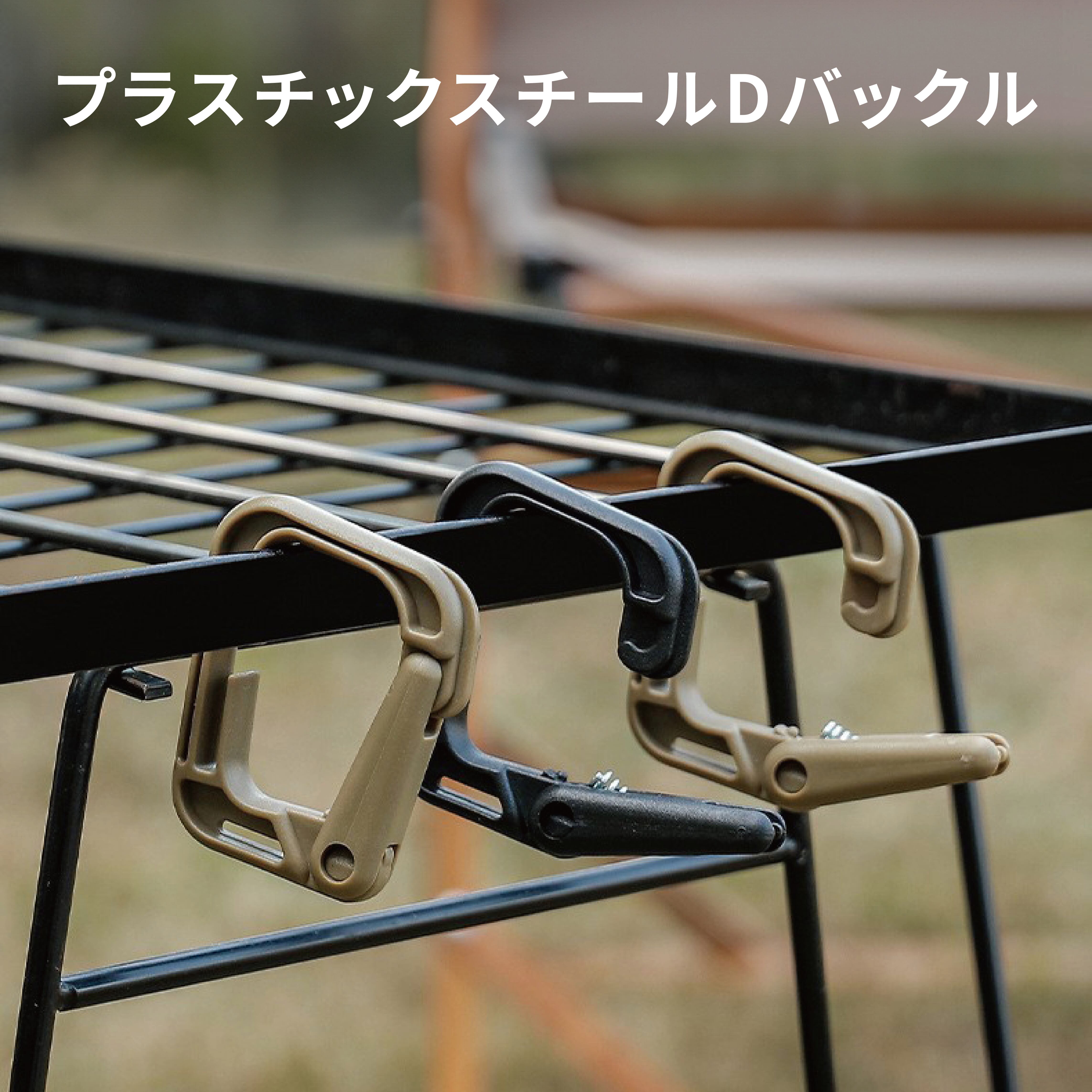 キャンプサイトでのアクセサリーとして、コップやカトラリーの他、ライト・ウェア・洗濯物などさまざまな物をフッキングして、アウトドアを楽しめます。
