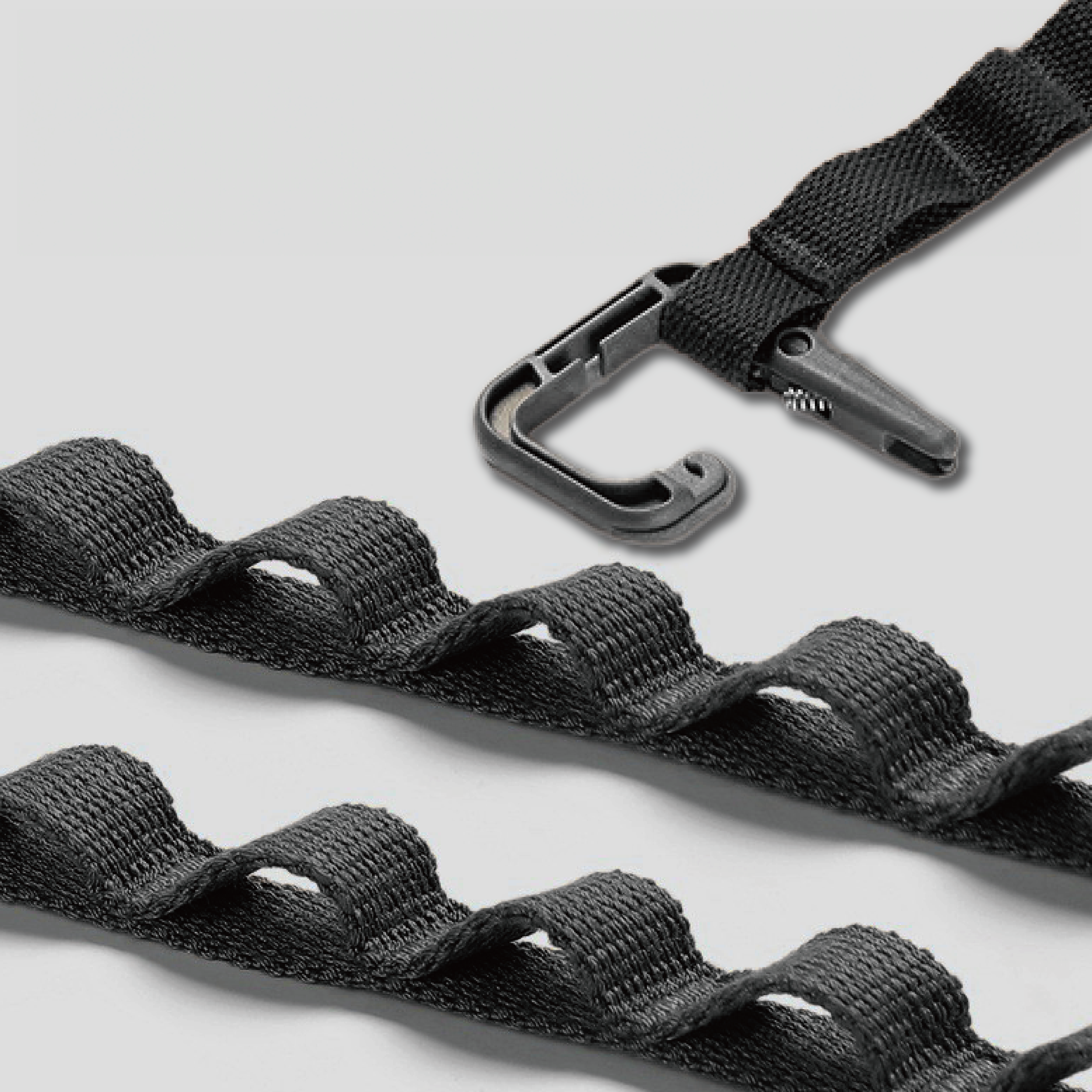 ループ付きのベルトロープで、カラビナやS字フックなどを使ってコップや電池ランタン、洋服などを吊るせる便利アイテムです。