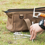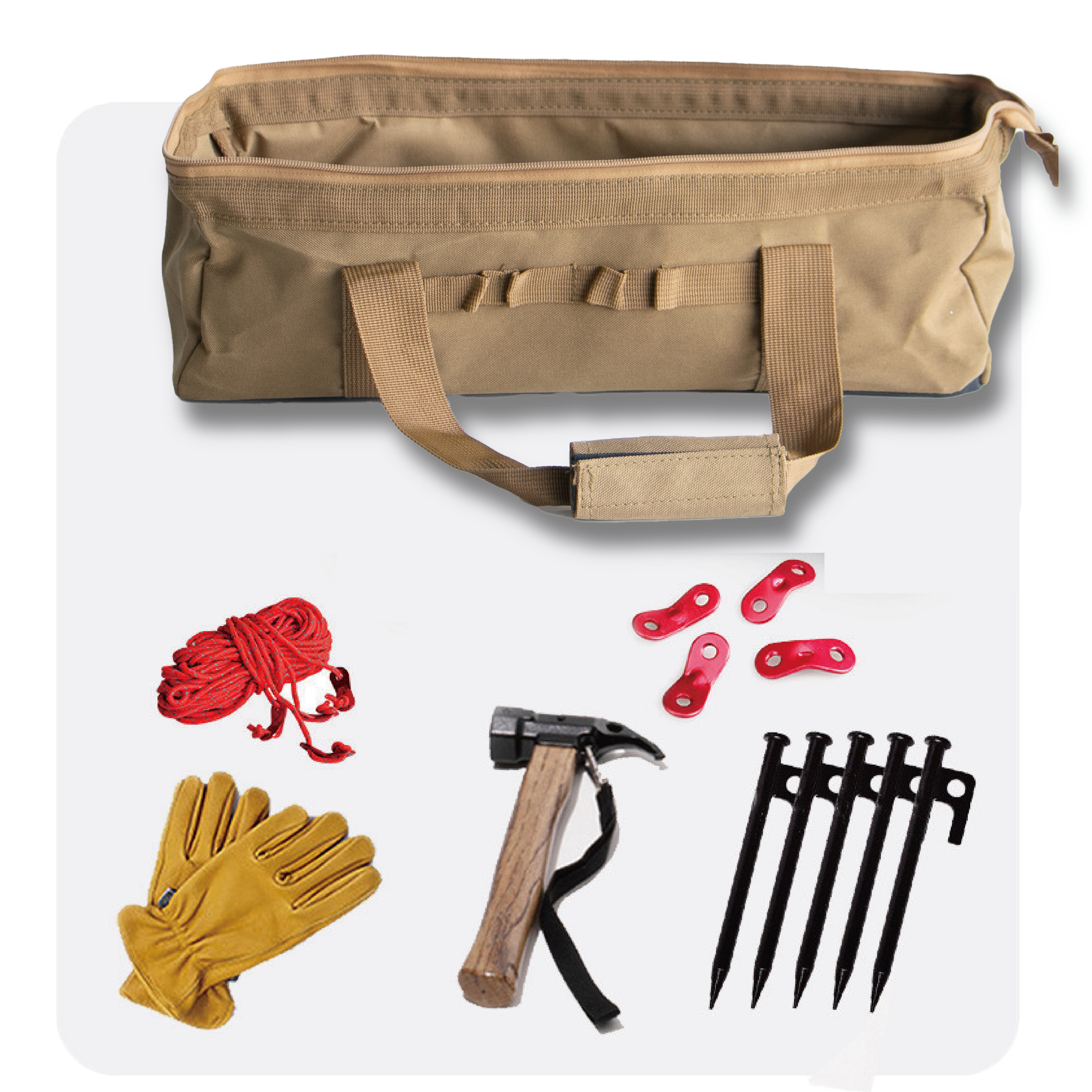 テント設営品、ペグ、ペグハンマーなどキャンピング用コンテナやスパナなどの工具入れとしてもおすすめです。