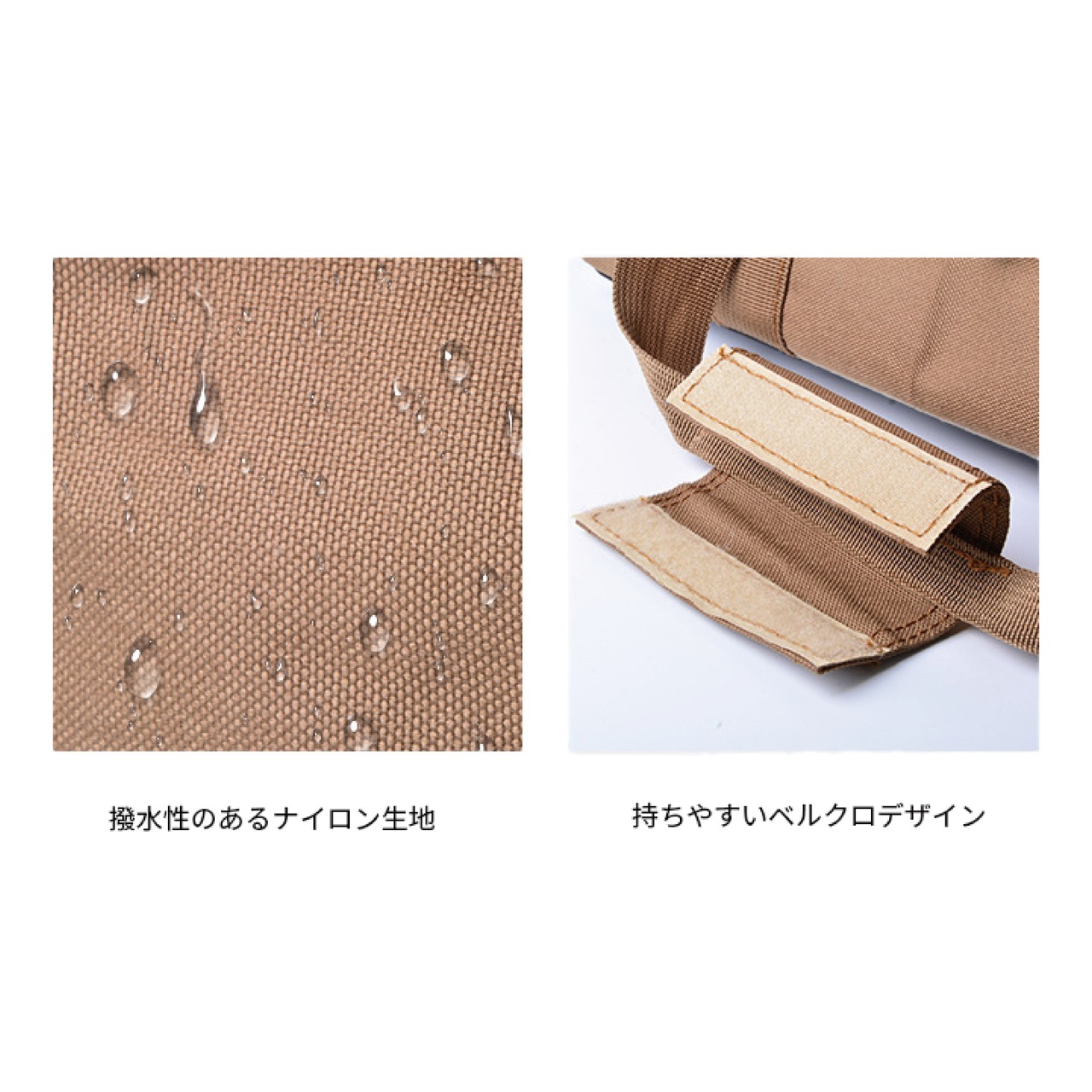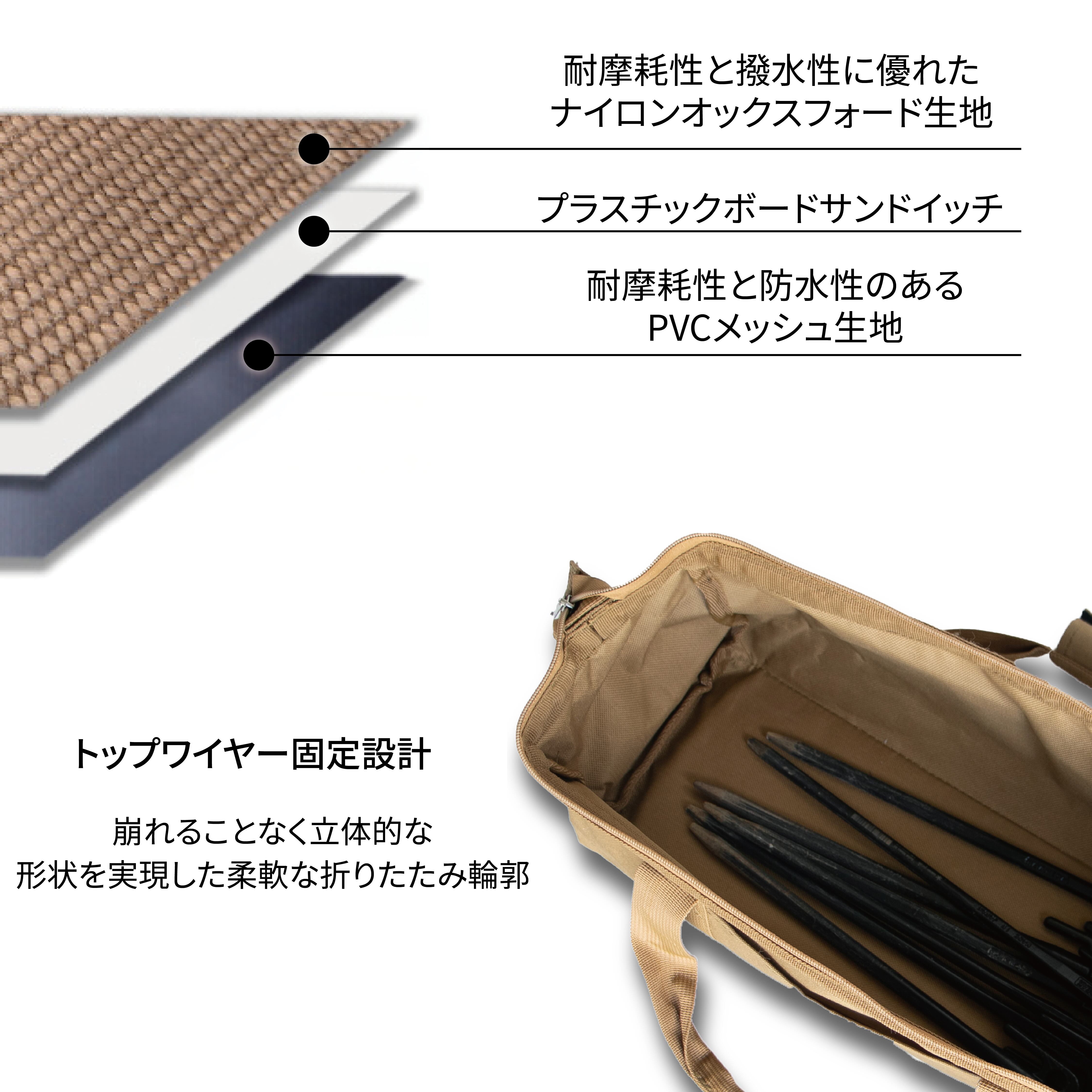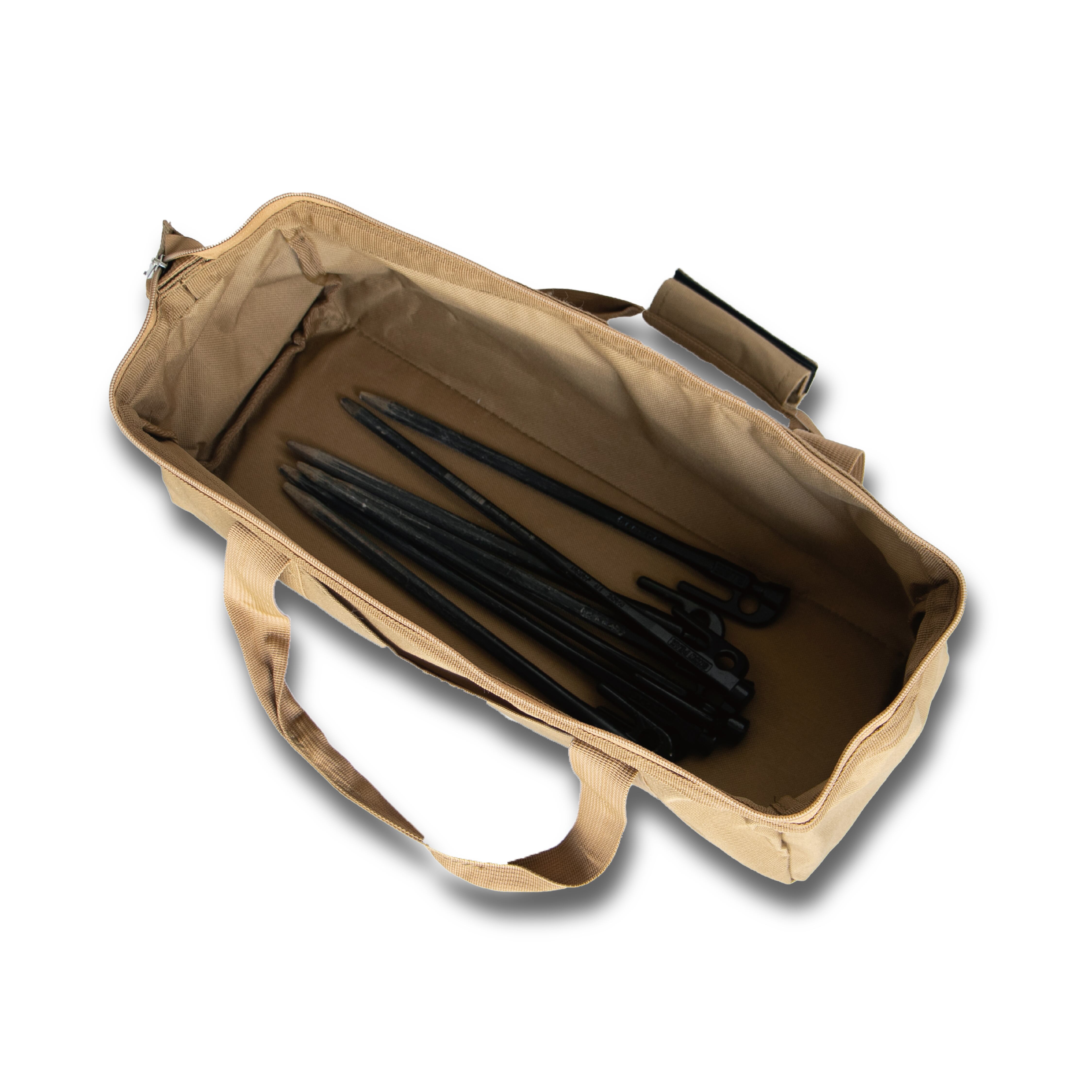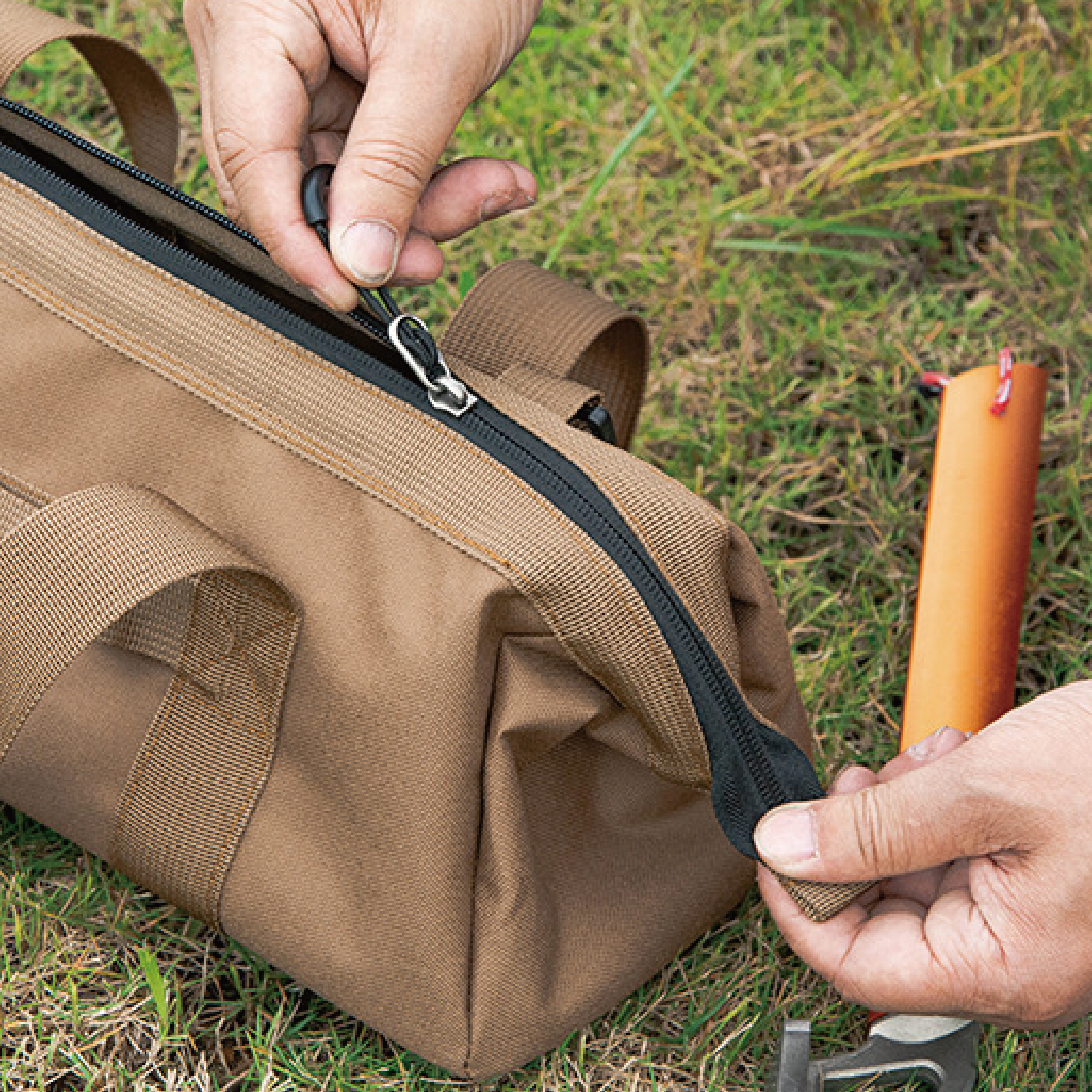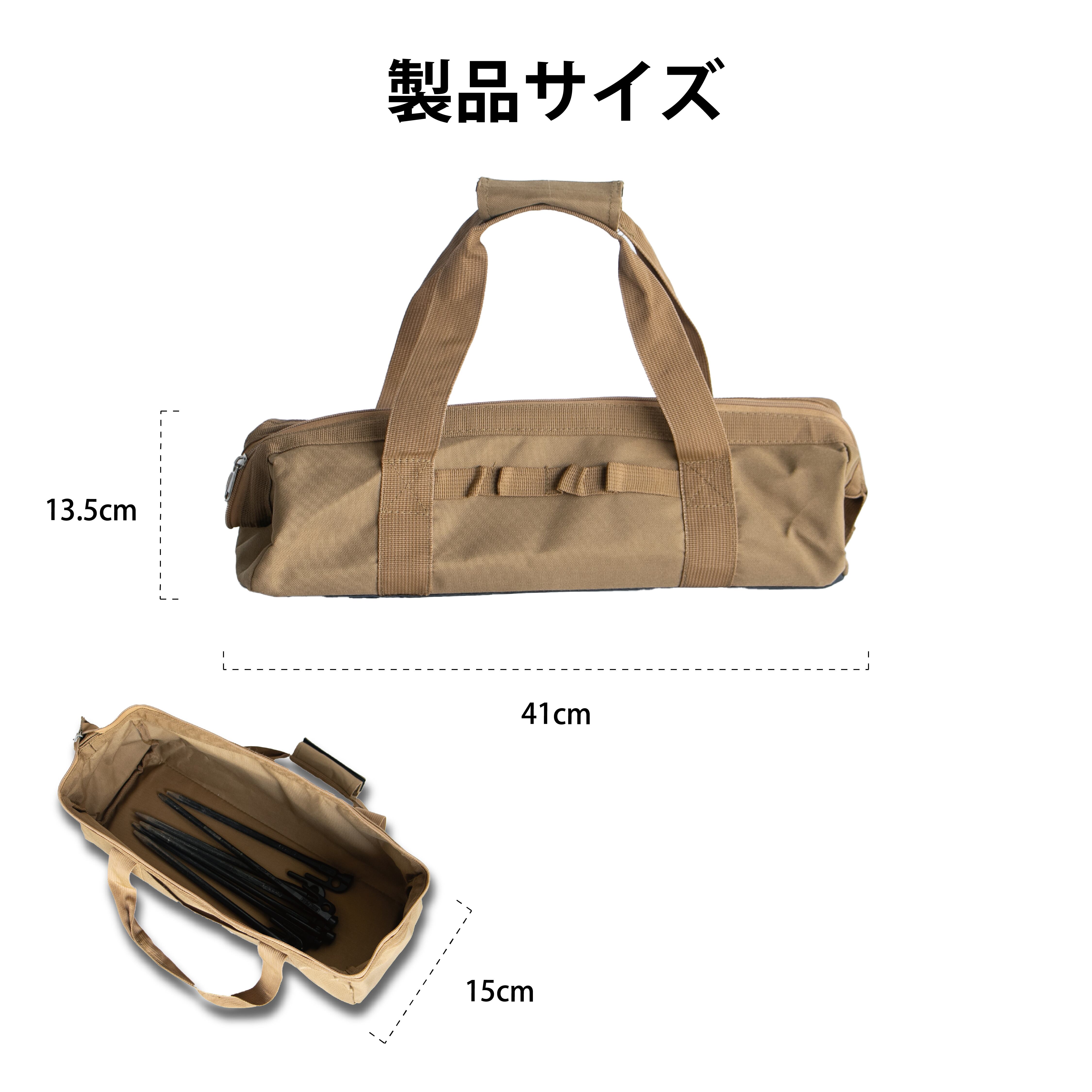 40cmまでのペグやハンマーなどの工具を収納できるロングタイプのバッグです。