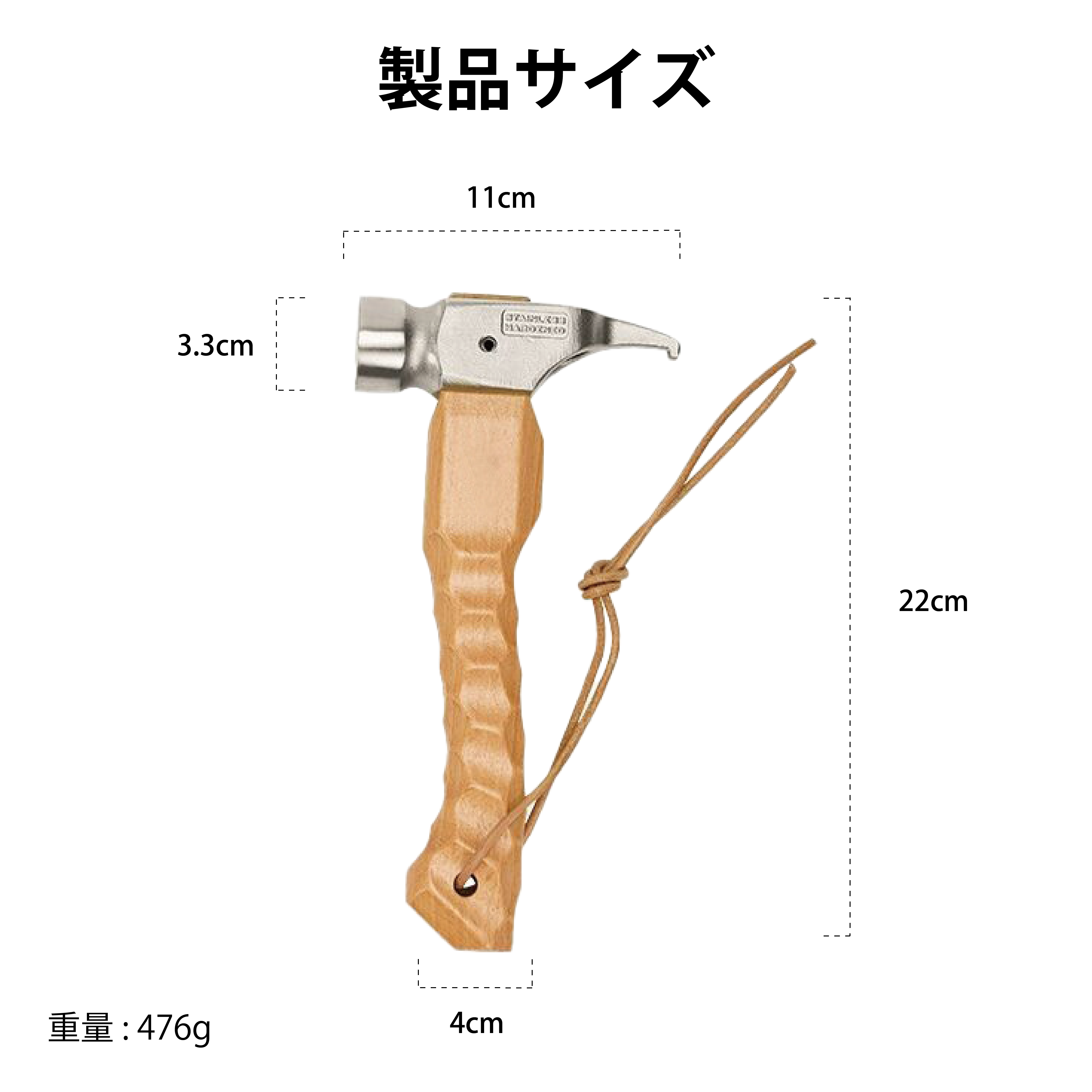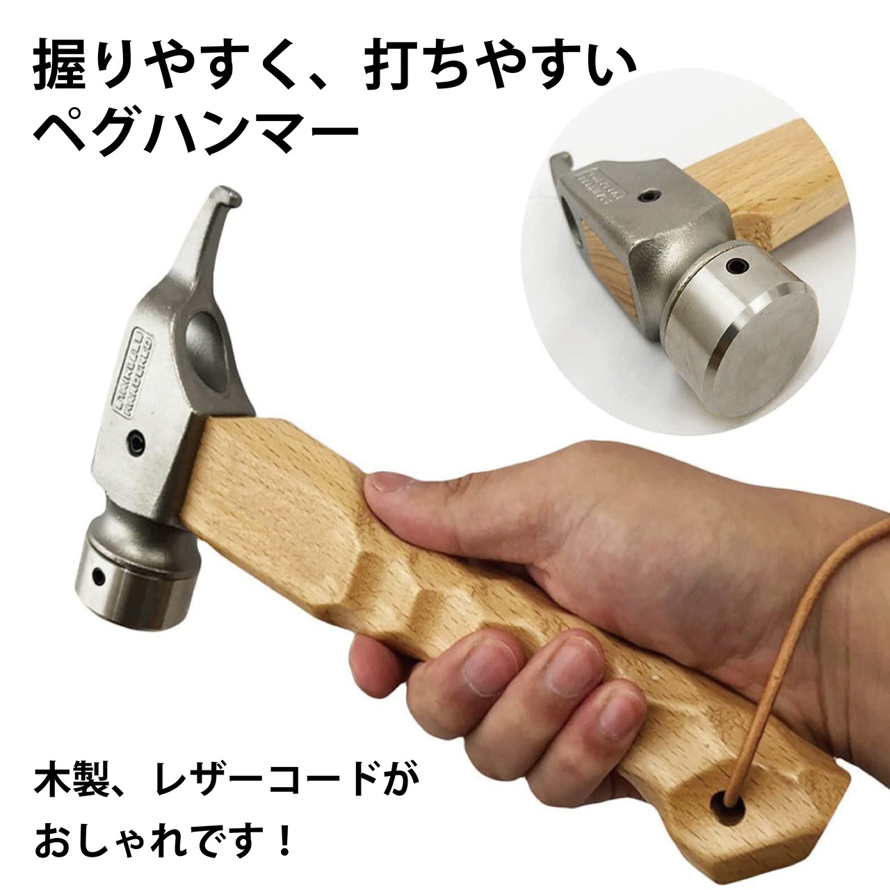 付属の安全紐を手首に巻いておけば、ハンマーのすっぽ抜けを防止できて安心です。