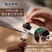 マグネット式ランタンフックはお好きな場所にライトを設置できます。ライト、小型扇風機、食器など様々なキャンプ道具を掛けることができます。