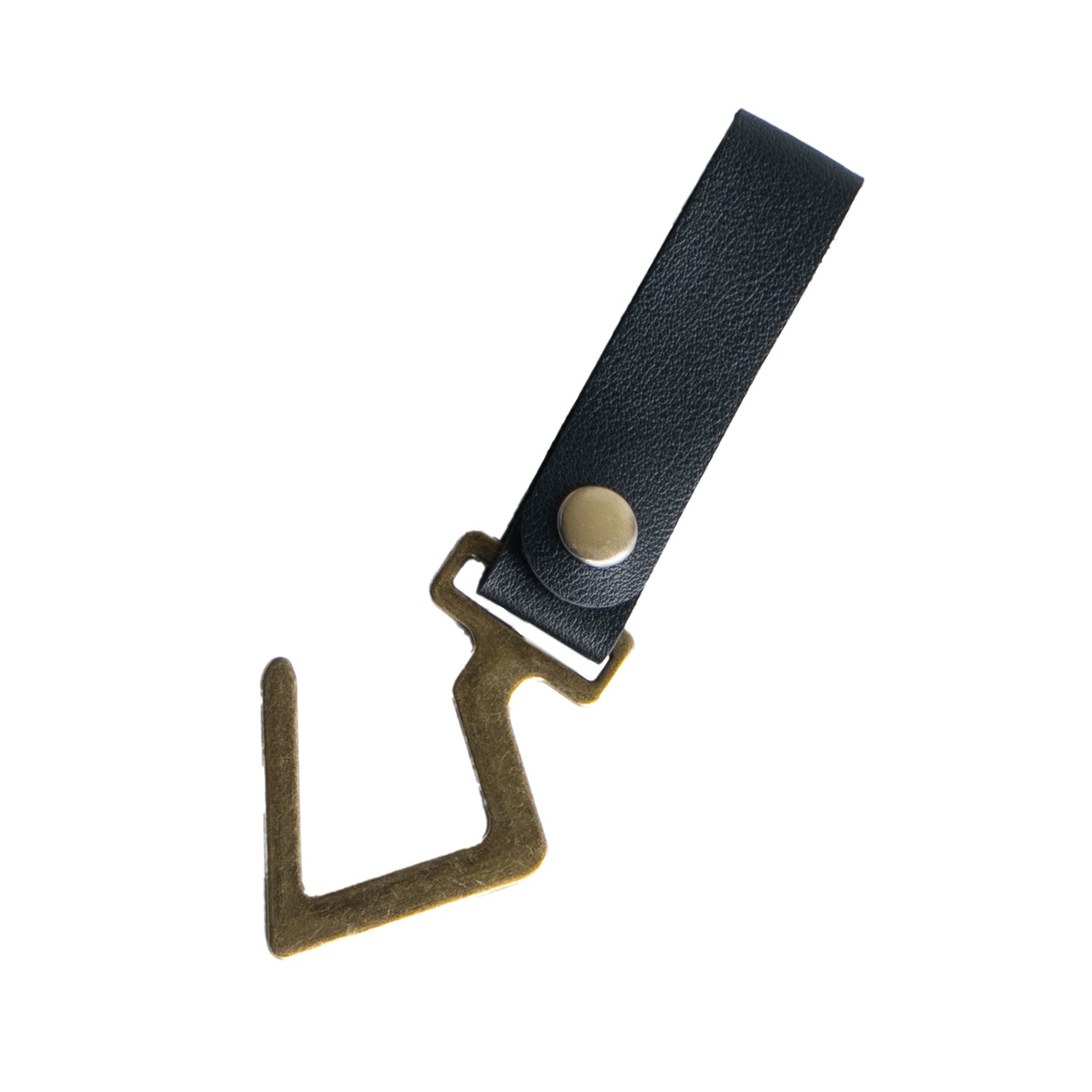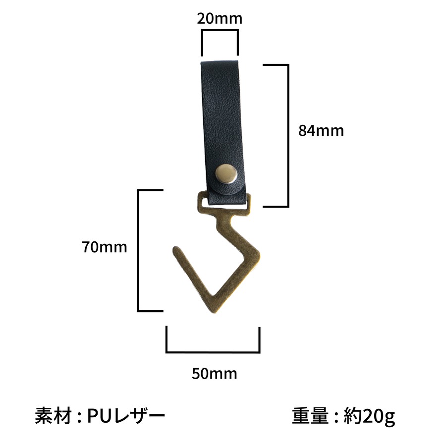 スナップボタンでサッと取り付けられる折りたたみフックです。