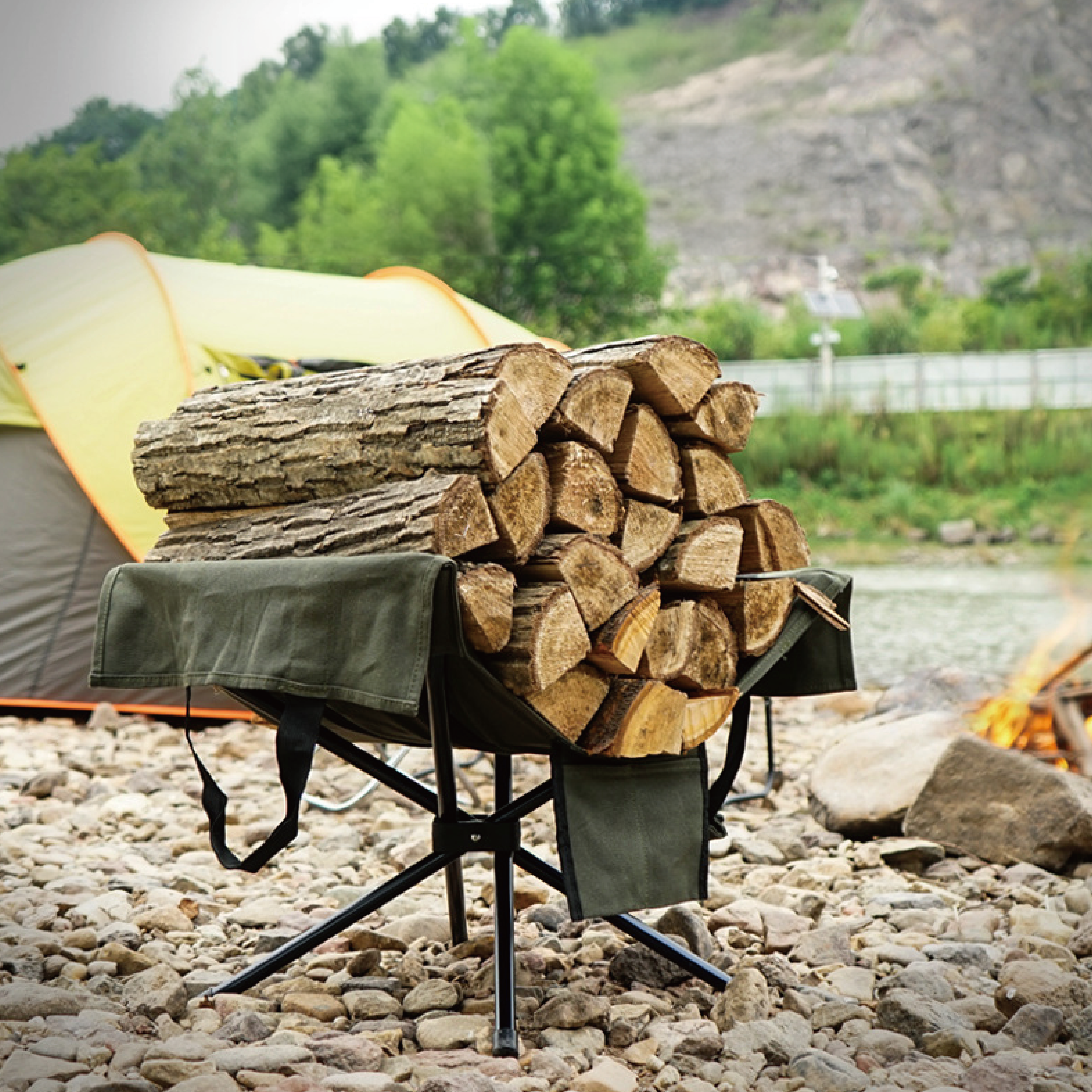 薪を湿気から守り、またログキャリーとしても使える 便利な薪ラックスタンドが登場しました。 収納時はコンパクトになり、持ち運びもラクラク。 より快適に焚火を楽しめるアイテムです。