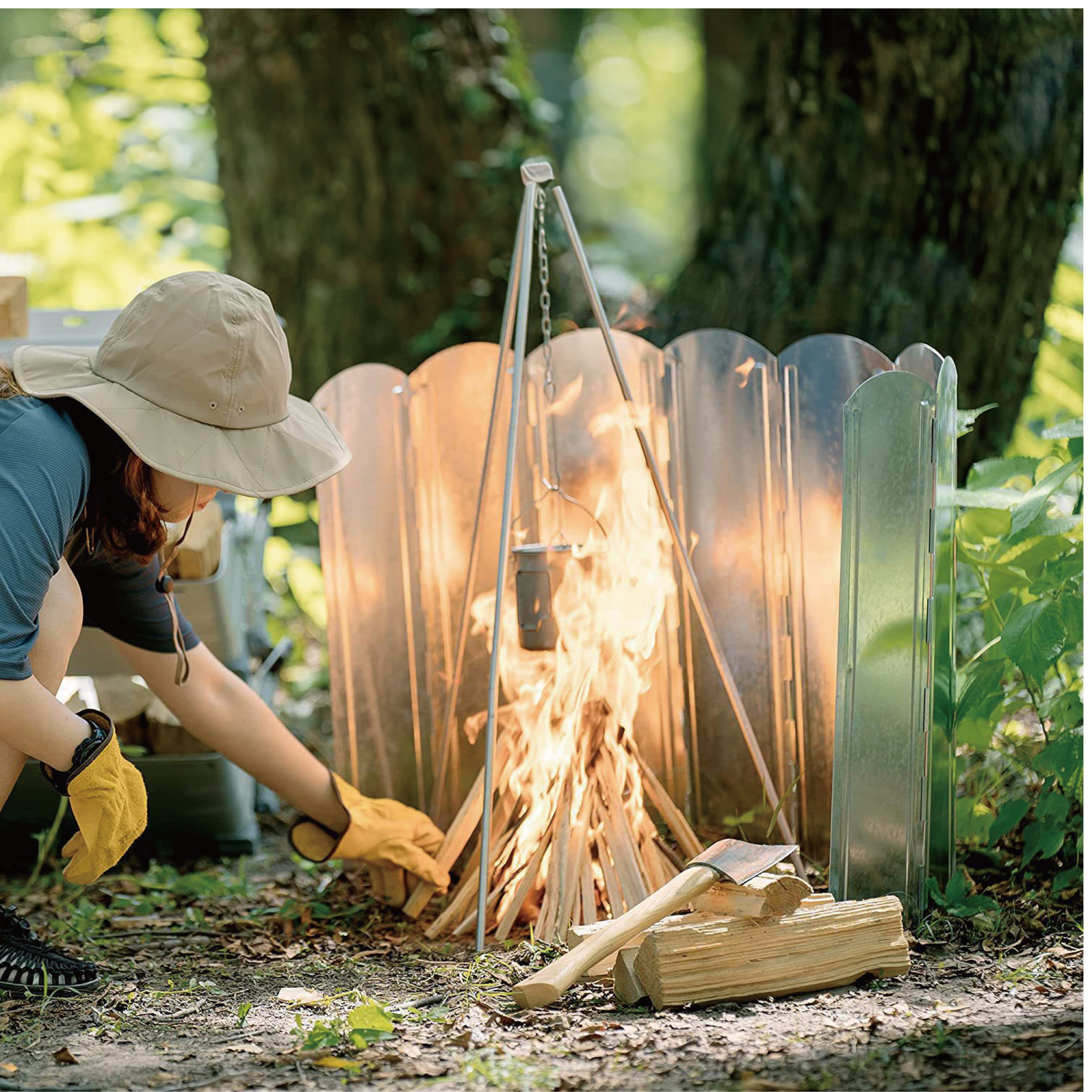焚き火台の風除けを用いることで、炎が安定し薪が長持ちするため安全に使用できます。